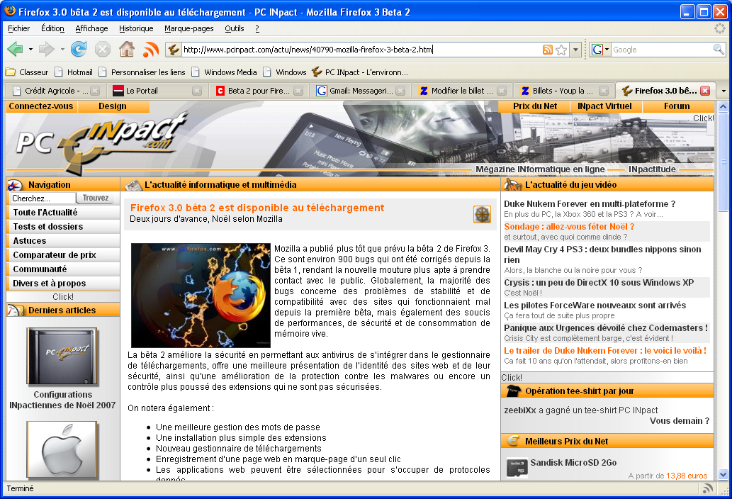 La fondation Mozilla a publié hier la beta 2 du futur Firefox 3, soit un mois après la première version beta. Mes tests de l'époque m'avaient laissé plutôt une bonne impression, surtout pour une version de développement. Qu'en est-il de cette nouvelle mouture ?